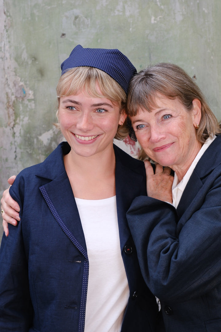 this easy-fit linen jacket features two large flap pockets, cuff openings for turn-back, rear vent, and robust cotton lining. Front edge and left-hand pocket flap are finished with pindot cotton tape trim. finished with our signature red stitch detailing, vintage tab pocket label and red piping at back neck.