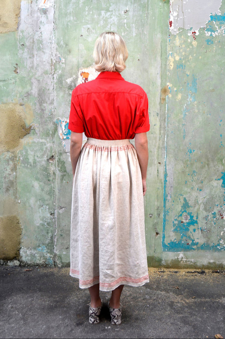 HERITAGE FRENCH LINEN SKIRT WITH STRIPE SELVEDGE