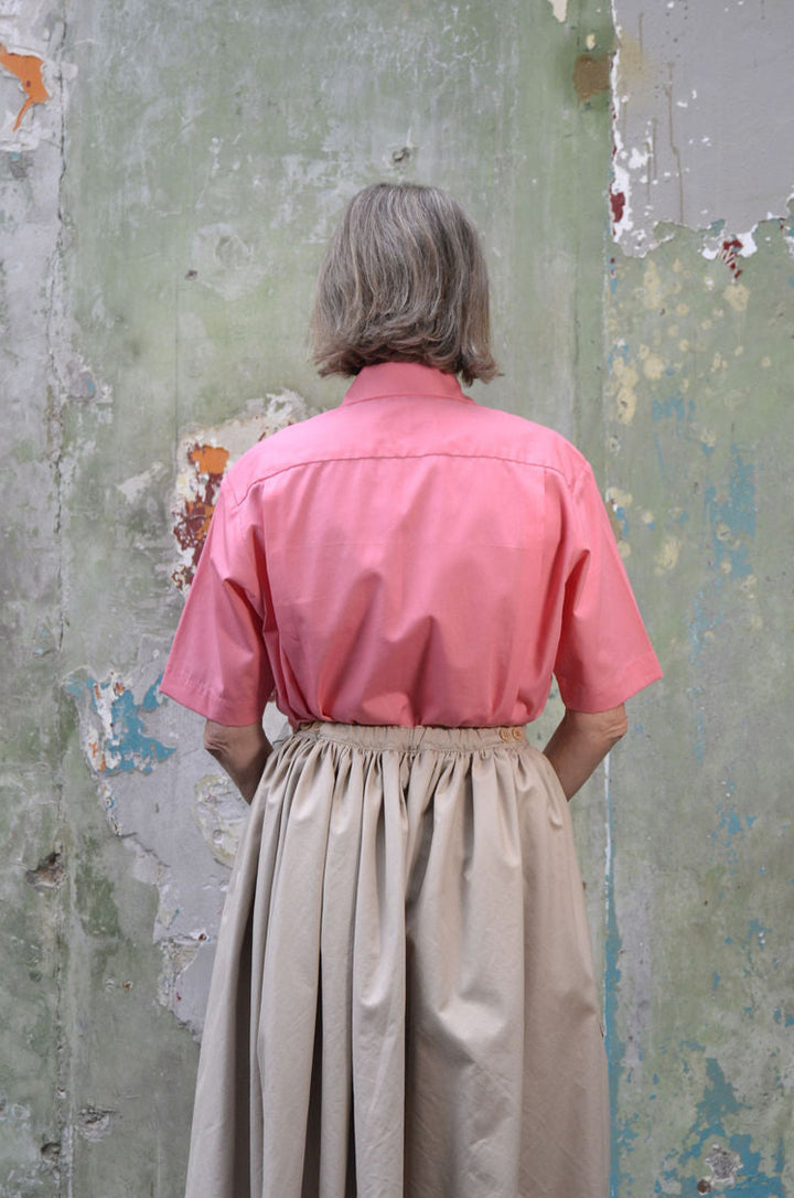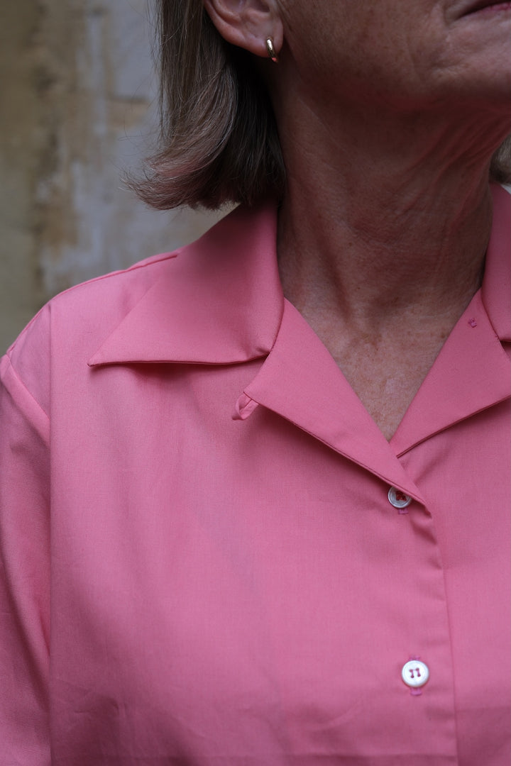 PLAIN, SHORT-SLEEVE BOWLING SHIRT - CORAL